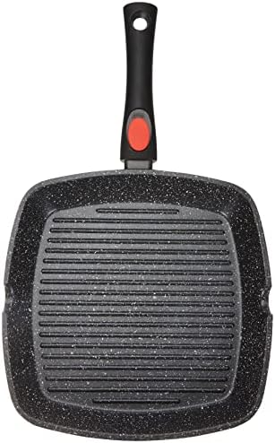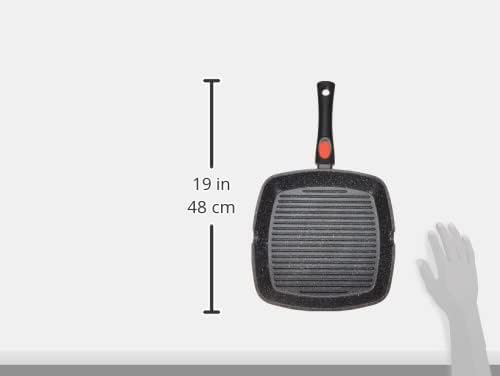 Kamberg – Poêle Grill 24 x 24 cm – Manche Amovible – Fonte d’Aluminium – Revêtement Type Pierre – Tous Feux dont Induction – Sans PFOA – 0008028, Noir